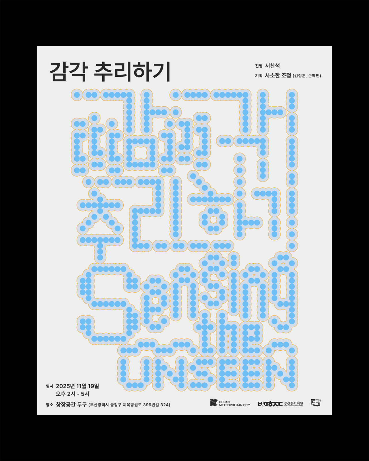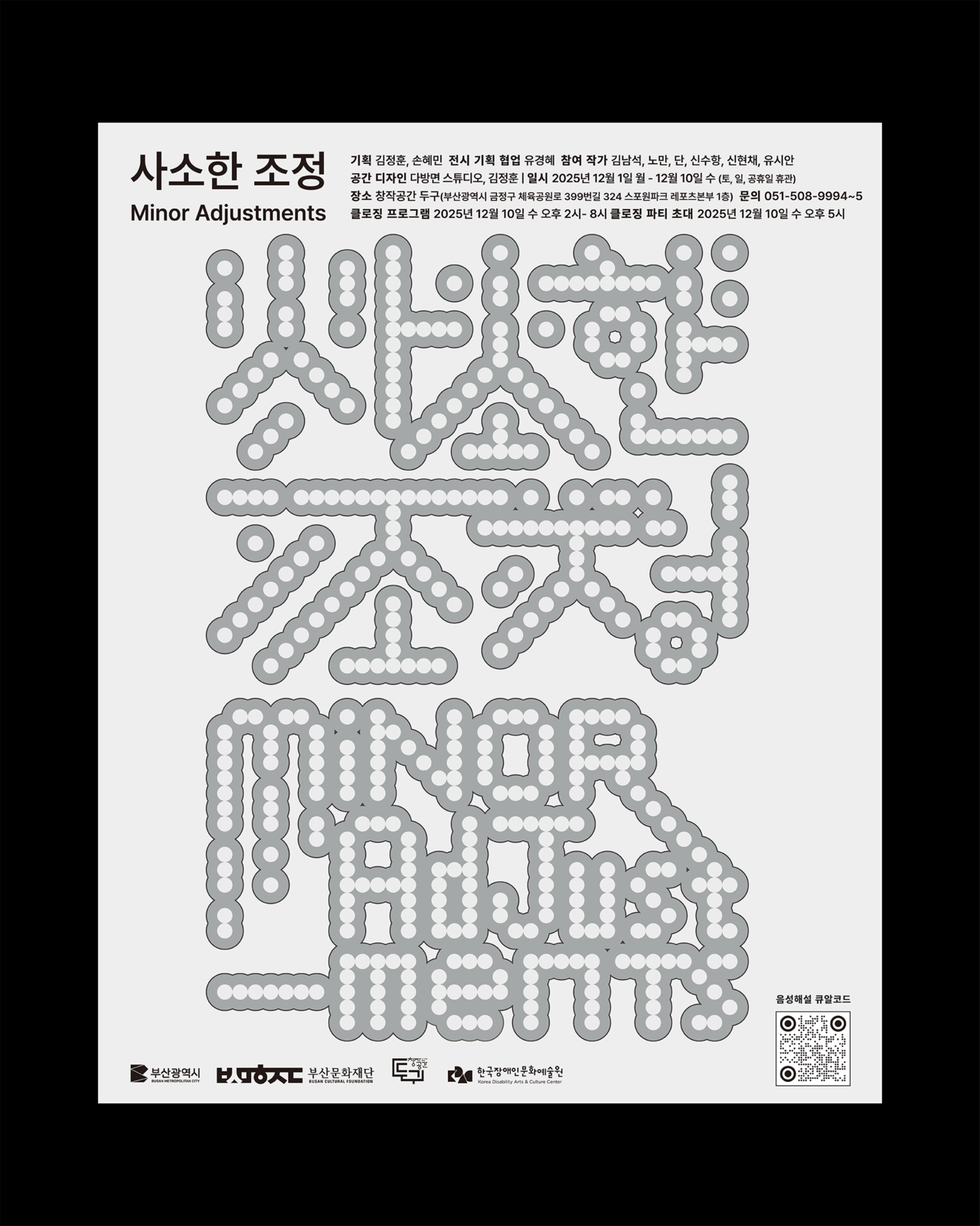 부산문화재단 주최로 진행되는 2025년 창작공간 두구 콜렉티브 프로젝트 ‘사소한 조정’의 워크숍과 결과보고전 그래픽을 작업했습니다.