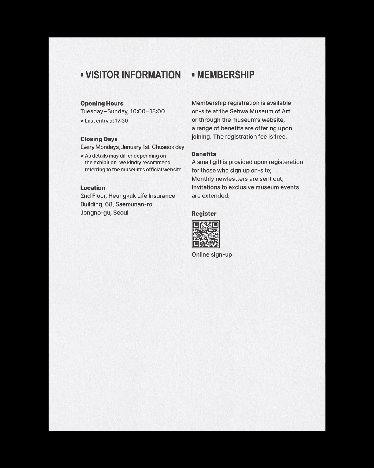 Korean and English Museum Guide Leaflet Design for Sehwa Museum of Art